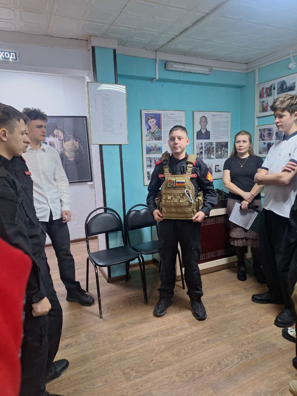 В завершении встречи ребята ознакомились с планшетной выставкой «Время Героев» из Амурского областного музея г. Благовещенска и предметами участников СВО, предоставленные музеем «Боевой славы».