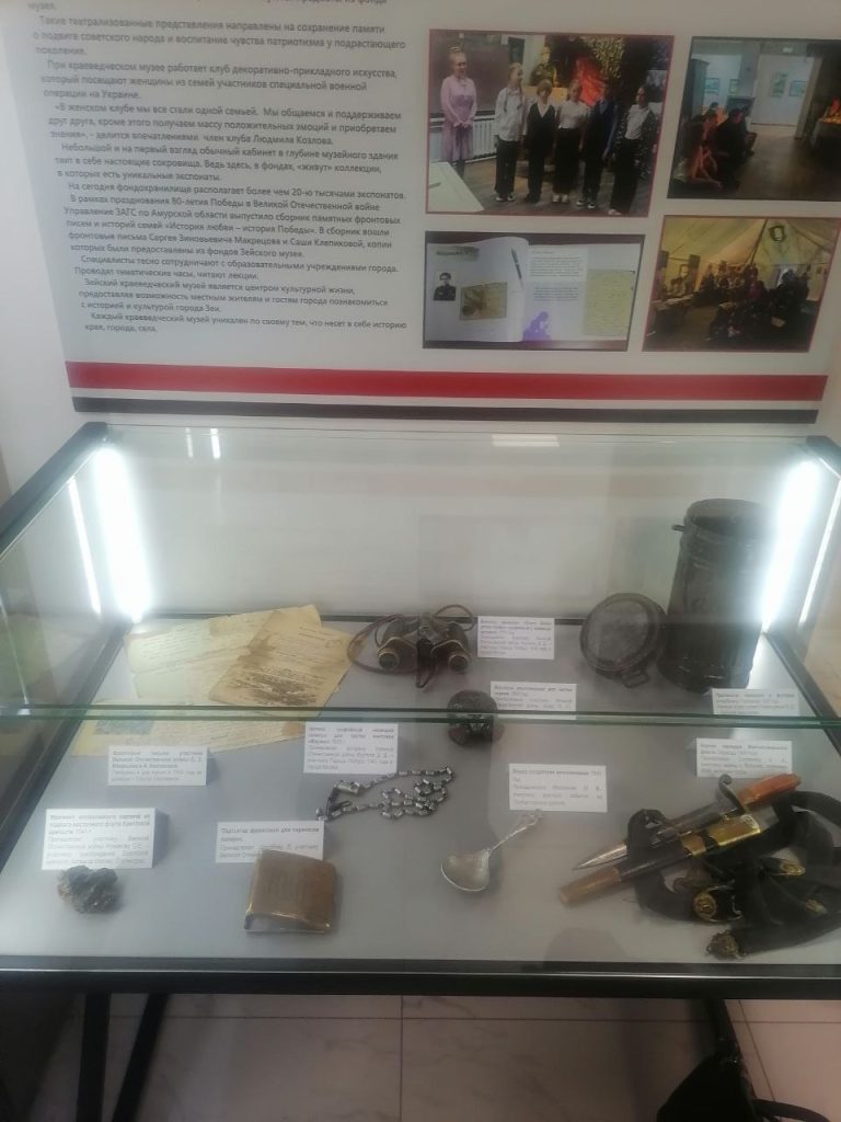 В первый день фестиваля Зейский краеведческий музей презентовал экспозицию предметов времен Великой Отечественной войны 1941-1945 годов, которая вызвала необычайный интерес у гостей фестиваля и представителей музеев КНР.
