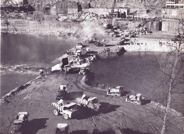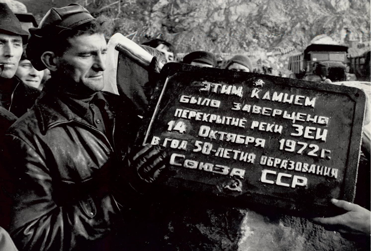 Перекрытие реки Зеи, последний камень. 1972 г.
