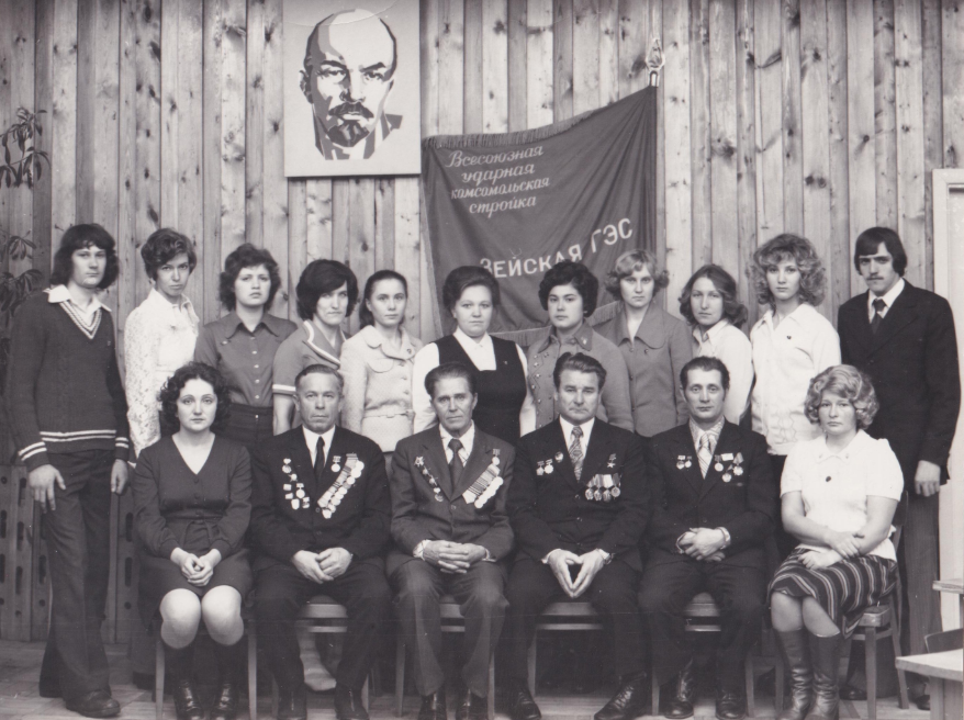 Ветераны труда Зейской ГЭС и комсомольцы-активисты подразделений стройки, 1983 г.