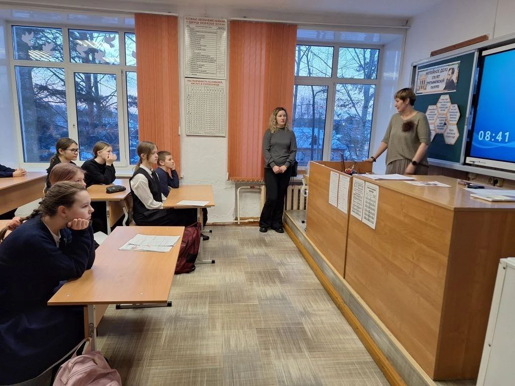 В своем выступлении Мария Александровна рассказала об организации и проведении различных выставок, экскурсий по залам музея и про городу, о многочисленных театрализованных мероприятиях, и тематических уроках. Вместе с тем ребята узнали о комплектовании и учёте музейных фондов, а также о специфике работы музеев.