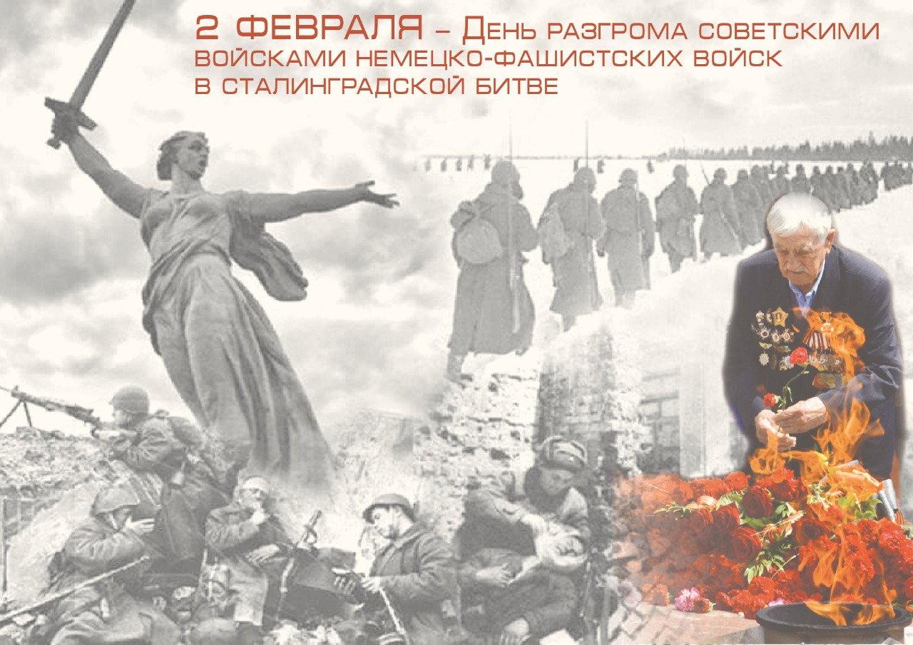 2 февраля Российская Федерация празднует День воинской славы России. В этот день 83 года назад завершилась Сталинградская битва — одна из крупнейших в Великой Отечественной войне 1941-1945 г. По своим масштабам и ожесточенности Сталинградская битва превзошла все сражения прошлого. Она началась 17 июля 1942 года и закончилась 2 февраля 1943 года. Бои шли двести дней и ночей. Сражения проходили в переломный момент, когда представления о непобедимости противника пошатнулись, и Советская армия одержала крупные победы.